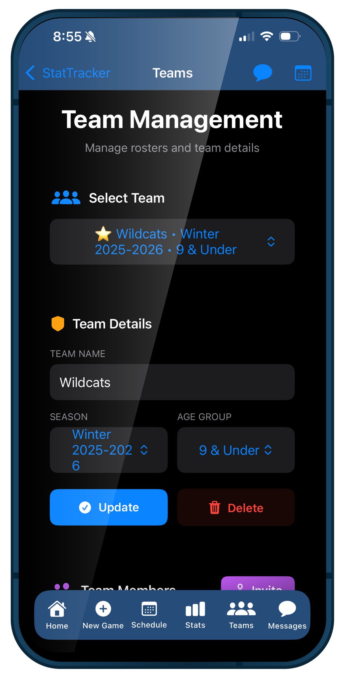 Track basketball stats, share practice and game schedules, and manage your team with StatTracker